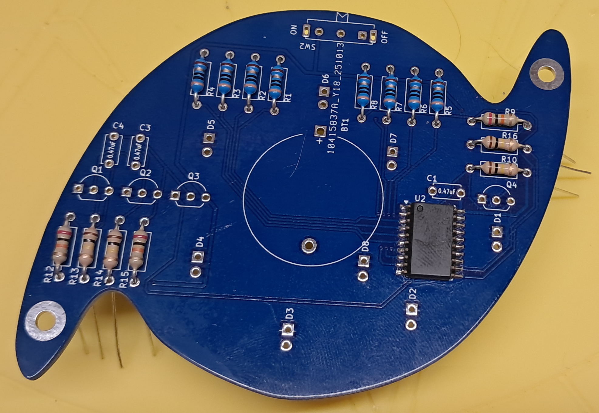 Flip the badge over and solder the components in place.